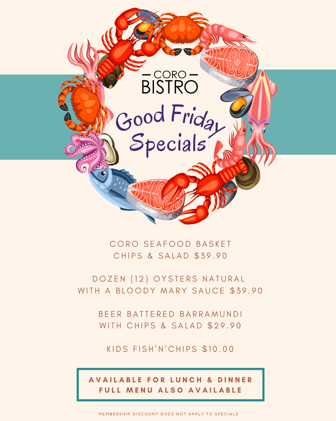 Please call 6962 1180 or email bistro@coroclub.com.au