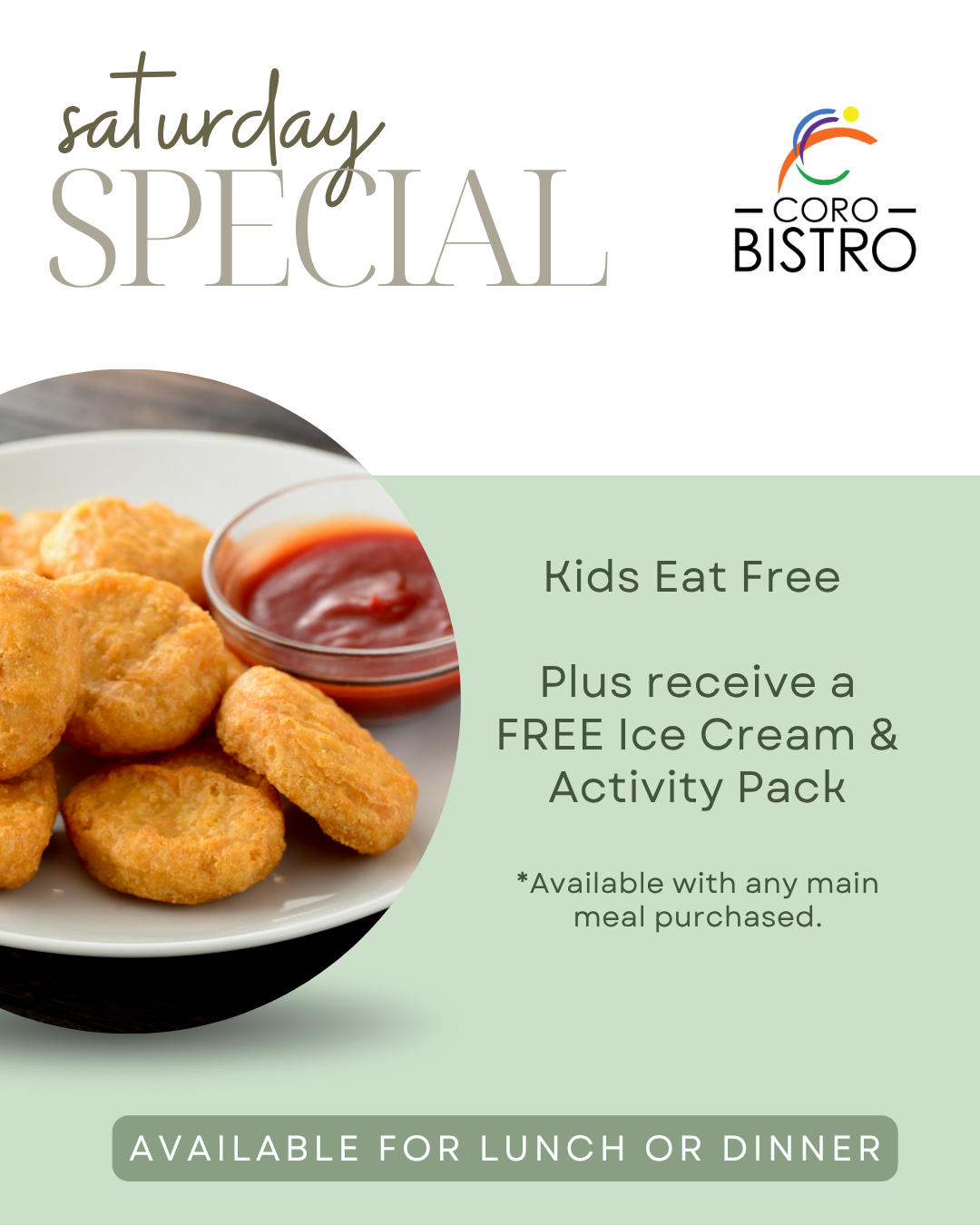 Kids Eat Free for Lunch & Dinner. Plus receive a FREE Ice Cream & Activity Pack