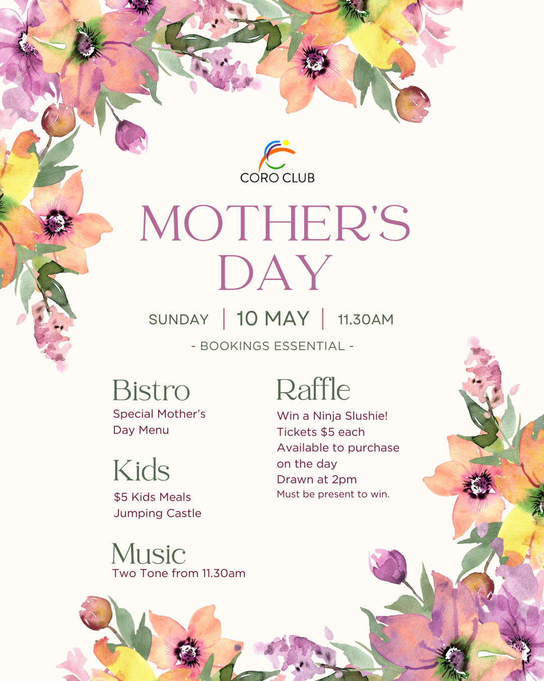 Celebrate Mother’s Day at The Coro Club with a relaxed and enjoyable day for the whole family.